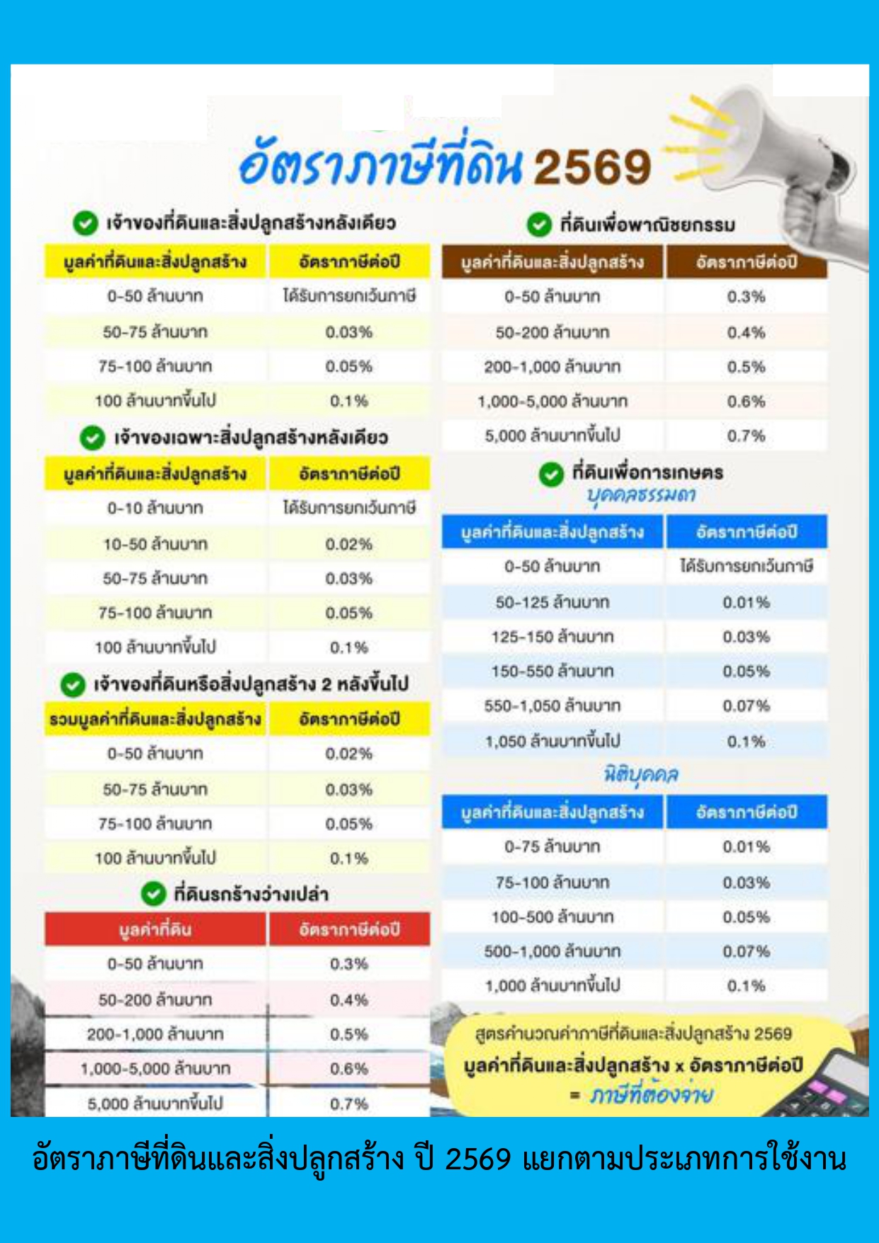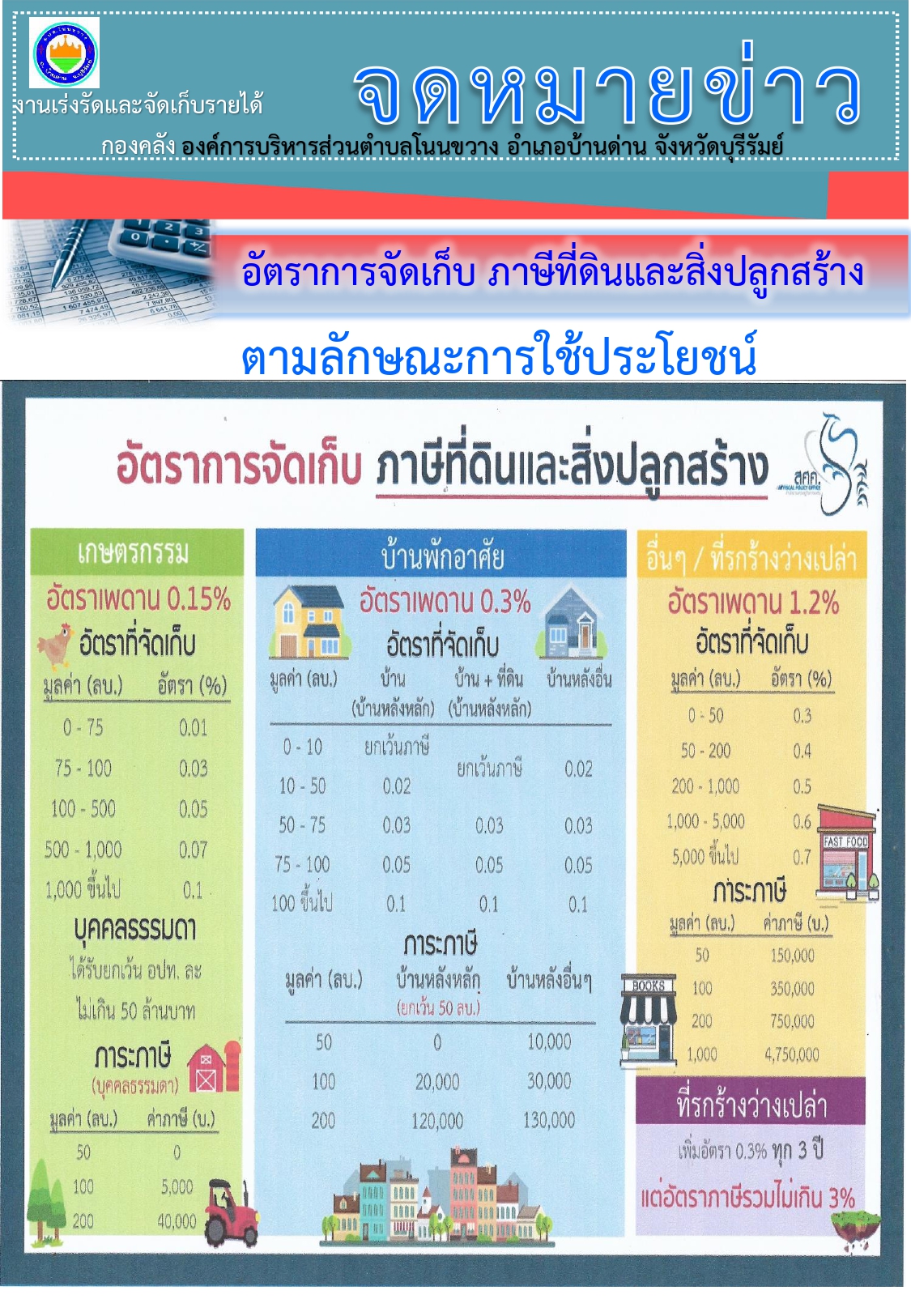 จดหมายข่าว อัตราการจัดเก็บ ภาษีที่ดินและสิ่งปลูกสร้าง
